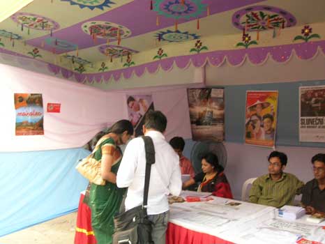L'affiche de "MAHALEO" sur le stand d'accueil du public au IIIème Festival International de Cinéma du Bengladesh. © laterit productions 2006