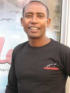 avec le tee-shirt "mahaleo" brodé à Madagascar